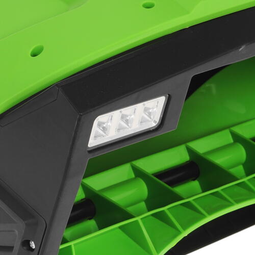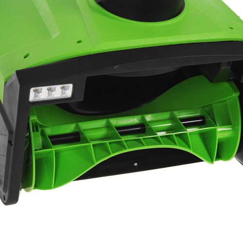 GreenWorks SN2300 оснащен ковшом размерами 500x250 мм, оптимальными для очистки садовых дорожек. Особенность агрегата в возможности настройки стороны и дальности выброса. Максимальное расстояние, на которое можно выбросить снег и мусор, составляет 7 м. Благодаря LED-фарам снегоуборщик подходит для уборки в темное время суток.