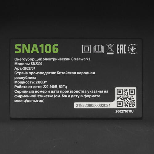 Снегоуборщик электрический GreenWorks SN2300 2602707 [5054668]