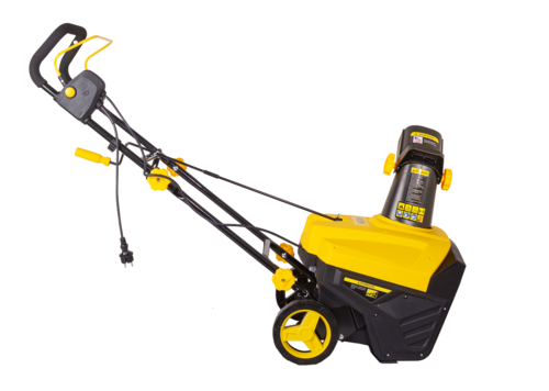 Основным элементом, приводящим в движение электроснегоуборщик, является электродвигатель, питание которого осуществляется от однофазной электросети (220 В). Электродвигатель приводит в действие шнек (стержень со сплошной винтовой стенкой), выбрасывает снег через поворачиваемый желоб на 3-7 метров в нужную сторону. Угол поворота желоба составляет 360 градусов.
