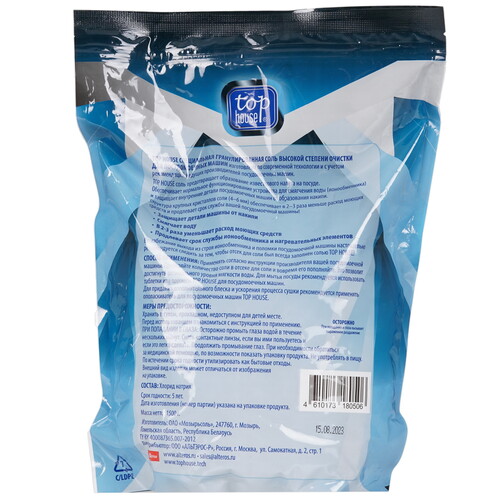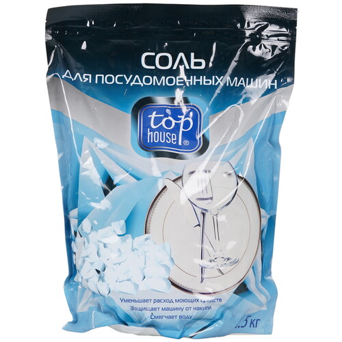 Гранулированная соль TOP HOUSE высокой степени очистки для посудомоечных машин предотвращает образование известкового налета и обеспечивает нормальное функционирование ионообменника. Крупные кристаллы (4–6 мм) уменьшают расход моющих средств в 2-3 раза и продлевают срок службы устройства. Регулярное использование соли TOP HOUSE защищает внутренние детали от накипи, что предотвращает поломки и выход из строя машины.