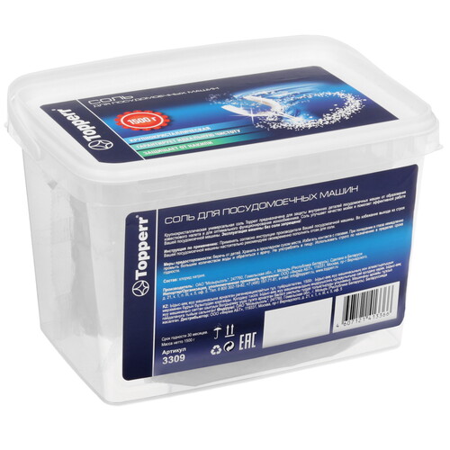 Гранулированная универсальная соль Topperr предназначена для защиты внутренних деталей посудомоечных машин от образования известкового налета и для оптимального функционирования ионообменника. Соль улучшает качество мойки и помогает эффективной работе посудомоечной машины.