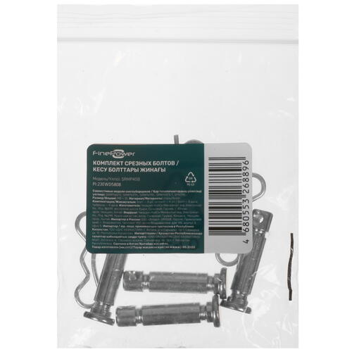 FinePower SRMP4SB выполняют функцию предохранителей при попадании под вращающийся шнек камней и других твердых предметов. Обрыв болта защищает от поломки шестерни редуктора и последующего дорогостоящего ремонта. Прочные металлические штифты радуют высокой устойчивостью к работе под нагрузкой и быстрому износу.