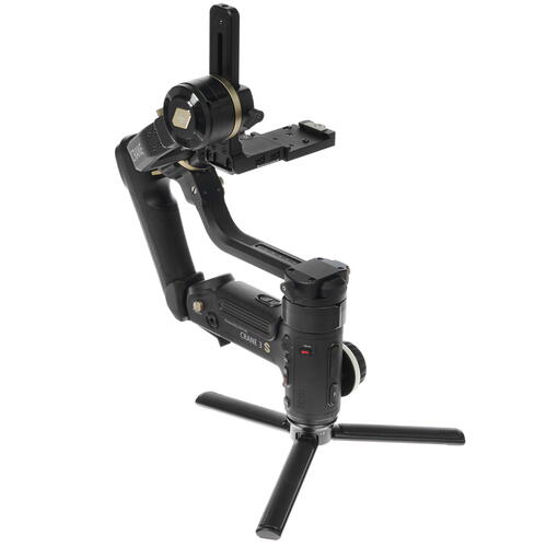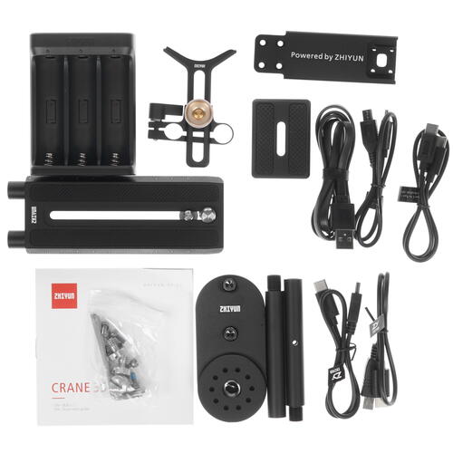 Устройство Zhiyun Crane 3S (CR107) весит 4.44 кг и легко выдерживает нагрузку до 6.5 кг. Предусматривается наличие трех элементов питания с емкостью 2600 мА*ч, способных действовать без подзарядки в течение 17-ти часов. Поставка осуществляется вместе с элементами питания, четырьмя кабелями управления камерами в чехле, быстросъемной площадкой, зарядным устройством, кабелем USB-C, съемной ручкой, подставкой для камеры, упором для объектива и штативом. Все аксессуары удобно расположены в компактном кейсе.
