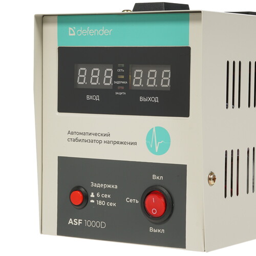 Стабилизатор Defender ASF 1000D с микропроцессорным управлением поддерживает полную мощность 1000 ВА при показателе активной мощности на выходе 0.6 кВт. Индикаторы сети, защиты и задержки позволяют следить за состоянием стабилизатора. На лицевой стороне корпуса предусмотрен ЖК-дисплей, который отображает напряжение на входе и выходе. Прибор защищен от сетевых помех благодаря встроенному фильтру, не допускает перегрузки, исключает перегрев автотрансформатора. Безопасную работу чувствительного оборудования обеспечивает регулировка задержки включения.