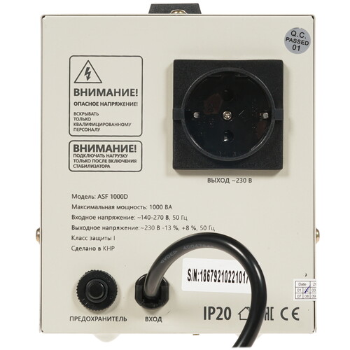 Стабилизатор напряжения Defender ASF 1000D релейного типа выполнен в металлическом корпусе и подходит для сетей с входным напряжением в пределе 140-270 В. Его основная задача ‒ регулировать показатель напряжения до 230 В, когда напряжения в сети повышается или падает. Поддержка частоты 50 Гц позволяет ему стабильно работать в бытовых условиях.