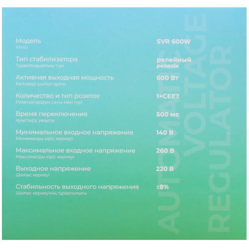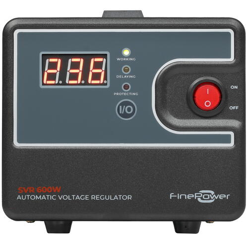 Стабилизатор напряжения FinePower SVR 600W обеспечивает бесперебойным питанием домашнюю и офисную технику в условиях нестабильной работы и частых сбоях в электросети. Устройство отвечает за корректное запитывание домашнего кинотеатра и Hi-Fi-аппаратуры. Стабилизатор оснащен ЖК-дисплеем с набором полезных и понятных индикаторов.