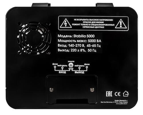 Однофазный стабилизатор релейного типа Quattro Elementi Stabilia 5000 предназначен для автоматического поддержания выходного напряжения на одинаковом уровне для питания потребителей электроэнергии при значительном отклонении входного напряжения от номинала 220 вольт.
