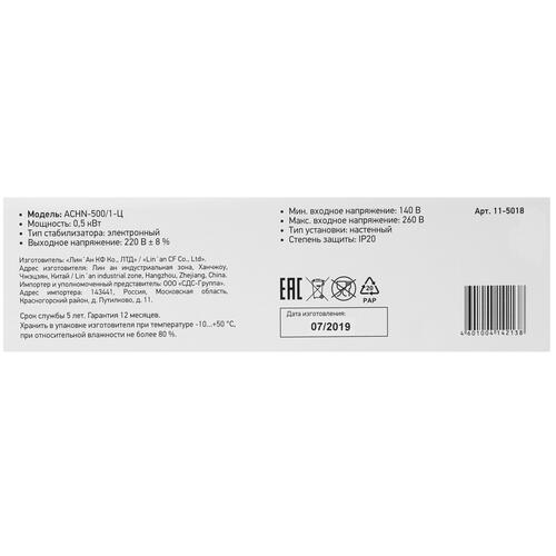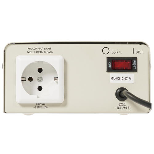 140 В - 260 В, 500 ВА, 0.5 кВт, 50-60 Гц, розеток - 1