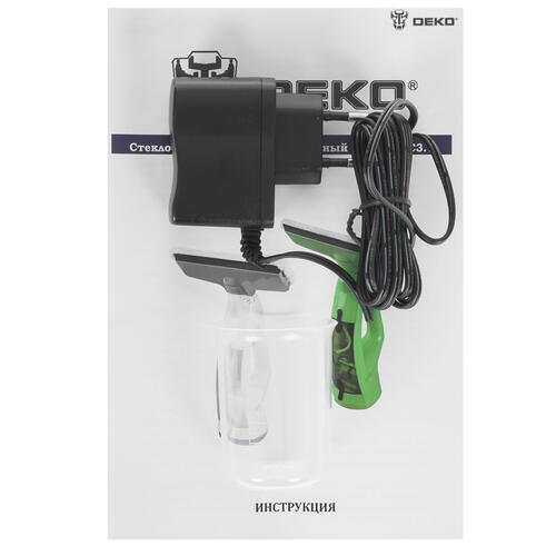 Стеклоочиститель DEKO WVC3.7 станет надежным помощником для поддержания чистоты стекол, зеркал, плитки. Благодаря покрытию насадки с мягкими волокнами микрофибры он эффективно устраняет различные загрязнения с гладких поверхностей, при этом не оставляет потеков и разводов. Прозрачный резервуар для воды имеет емкость 100 мл и легко наполняется с помощью мерного стакана. Автономная работа на основе аккумулятора не ограничивает движения и делает уборку еще более комфортной. Одного заряда аккумулятора достаточно для 30 минут работы DEKO WVC3.7 без подзарядки.