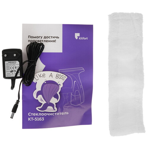 Kitfort KT-5163 подходит не только для очистки стекол и зеркал, но и любых гладких поверхностей. Световые индикаторы оповещают об уровне оставшегося заряда. В комплекте предусмотрен распылитель для чистящего средства и тряпка из микрофибры, не допускающая появления разводов. Подзарядка аккумулятора занимает до 270 мин. Предусмотренная конструкцией ручка позволяет удобно придерживать устройство правой или левой ладонью.