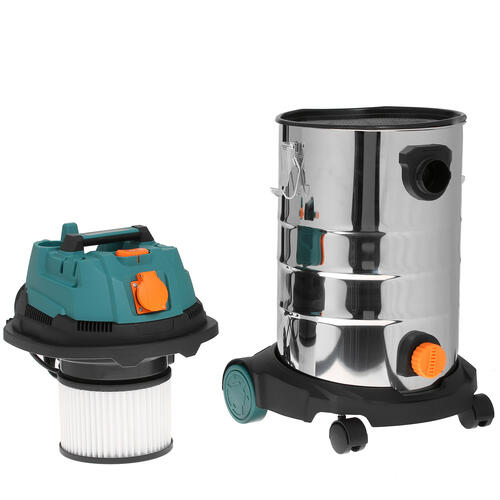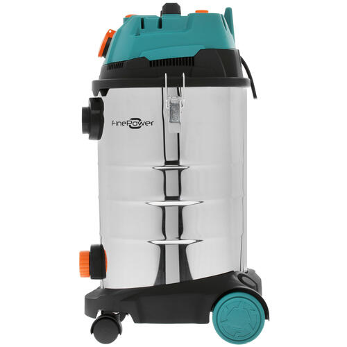 Строительный пылесос FinePower MFP-1430 мощностью 1400 Вт справляется с удалением сора и пролитой жидкости. Возможна эксплуатация устройства совместно с электроинструментами. Легкое перемещение в необходимое место обеспечивают расположенные в основании колеса. Для автономной работы требуется подключение 5-метрового шнура к сети напряжением 220 В.