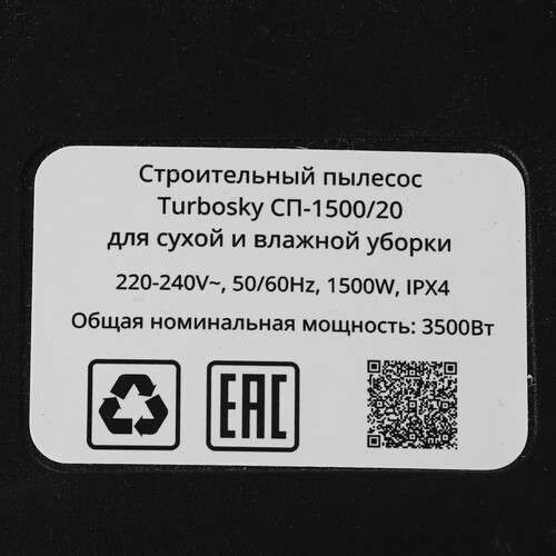 Строительный пылесос Turbosky СП-1500/20 [5478705]