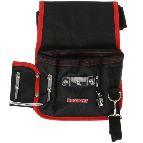 Для подвешивания молотка предусмотрена отдельная металлическая петля. Текстильный поясной ремень регулируется по размеру и оснащен пластиковой застежкой для фиксации. Поясная сумка Rexant RE-5 12-5601 изготовлена из синтетического материала, который гарантирует прочность и влагостойкость.