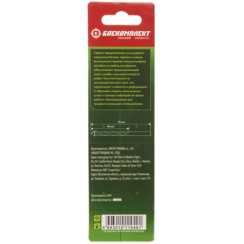Сверло спиральное БОЕКОМПЛЕКТ B1055-04-75 [9159594]