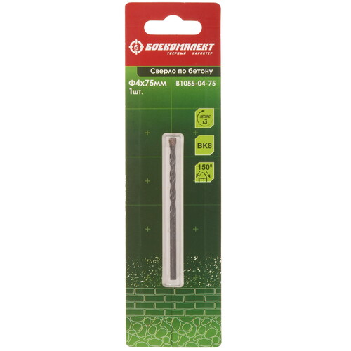 Сверло по бетону 4х75 мм Боекомплект B1055-04-75 предназначено для ударного сверления бетона, кирпича и камня. Высококачественная напайка из BK8 обеспечивает продолжительный срок службы и высокую скорость работ. Тело изготовлено из инструментальной стали, что гарантирует стойкость к деформации, U-образная спираль легко выводит шлам и снижает вибрацию во время работы. Рекомендовано для профессионального использования.