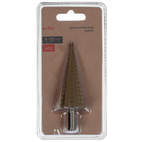 Сверло ступенчатое Aceline SDA0921 диаметр отверстия 4-32 мм и имеет 15 ступеней.