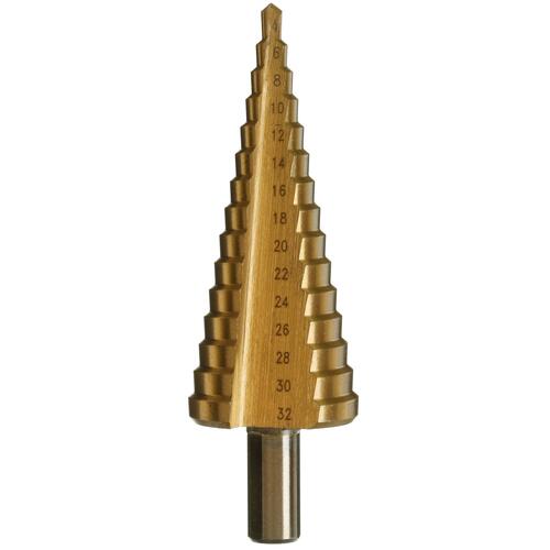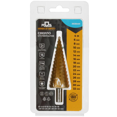 Сверло ступенчатое FIT MOS 36384M предназначено для формирования отверстий и рассверливания уже существующих отверстий в листовых материалах – сталь, пластик, цветные металлы. Конструкция оснастки предусматривает 15 ступеней сверления в диапазоне 4-32 мм. Сверло FIT MOS 36384M выполнено из стали марки HSS и рассчитано на долгий срок службы. Специальное покрытие на основе нитрида титана повышает устойчивость сверла к внешним воздействиям. Для установки в патроне инструмента применяется трехгранный хвостовик.