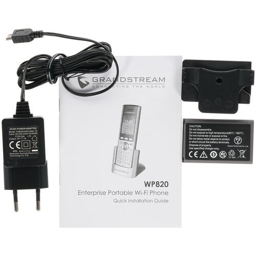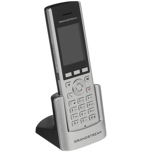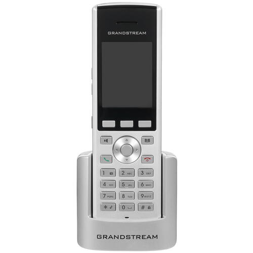 Телефон VoIP GRANDSTREAM WP820 представляет собой беспроводное устройство, оснащенные 2--диапазонным модулем Wi-Fi 802.11a/b/g/n, усовершенствованной антенной для стабильного соединения, а также модулем Bluetooth, с помощью которого вы легко сможете подключить гарнитуру или мобильное устройство — будь то смартфон или планшет. Модель также оснащена двойными высококачественными микрофонами, что вкупе с поддержкой различных звуковых кодеков, среди которых — Opus, G.729 A/B, iLBC, G.722, а также G.711, обеспечивает четкую передачу голоса без лишних помех и искажений. Питание устройства осуществляется от встроенного аккумулятора, за счет которого телефон может работать в режиме разговора до 7.5 ч. Для зарядки используется док-станция с внешним блоком питания, которые, как и сама батарея, входят в комплект поставки.