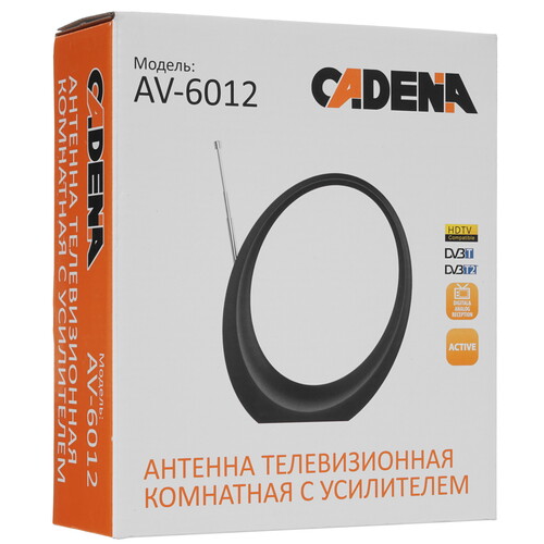 Всеволновая ТВ-Антенна CADENA AV-6012 подходит для использования в городе, в сельской местности или в дачном поселке. Модель обладает поддержкой стандарта DVB-T2. Это позволяет принимать сигнал каналов цифрового эфирного телевидения. Необходимым дополнительным оборудованием для просмотра ЦТВ являются ресивер или телевизор с поддержкой DVB-T2. Именно от ресивера антенна получает дополнительное питание, требуемое для работы встроенного усилителя. Усиление сигнала позволяет повысить качество изображения в зоне неуверенного приема.