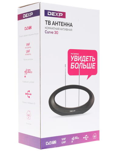 ТВ-Антенна DEXP Curve 30 позволит принимать сигнал в метровом и дециметровом диапазоне. Она подойдет для присоединения к различным телевизорам. Можно просматривать любимые каналы без подключения к кабельной сети.
