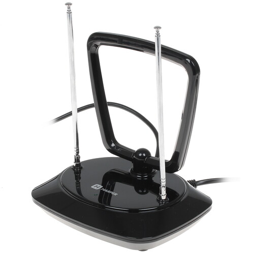 Черная активная ТВ-Антенна Harper ADVB-1415 предназначена для размещения в помещении. В ее конструкции есть телескопические элементы. Это устройство обеспечивает прием сигналов FM, UHF (ДМВ), VHF (МВ), DVB-T2. Также оно позволяет усиливать их и получать более четкое изображение. Комнатная антенна Harper ADVB-1415 гарантирует стабильное качество изображения и позволяет наслаждаться любимыми телепрограммами без помех и сбоев. Питание устройство получает внешнее.