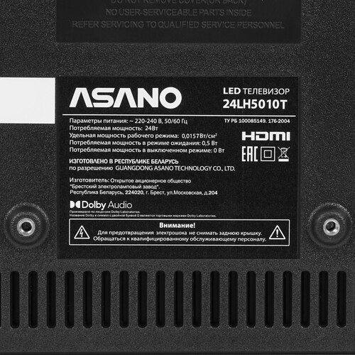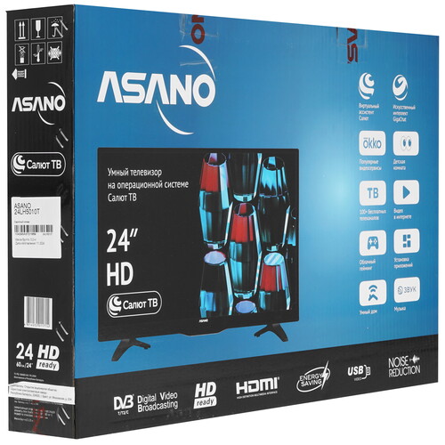 LED-телевизор Asano 24LH5010T оснащен экраном диагональю 23.8 дюйма с разрешением 1366x768 пикселей. Платформа Smart TV под управлением ОС Салют открывает доступ к развлекательным потоковым сервисам и приложениям. Беспроводное соединение с интернетом выполняется при помощи встроенного модуля Wi-Fi.