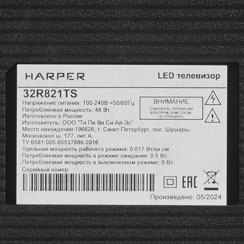 Цифровой LED-телевизор Harper 32R821TS – это сбалансированное решение для небольших помещений со всеми функциями. Безрамочный дизайн экрана с разрешением 1366x768 точек имеет хорошие углы обзора и контраст, поэтому отлично смотрится с любой точки помещения. Вы получаете доступ к любому типу контента: можете просматривать файлы, записанные на съёмные носители, цифровое или кабельное ТВ. С помощью функции Smart Lite вы можете просматривать он-лайн контент (уcтановленные приложения - Youtube и IVI). Подключение к сети по Wi-Fi или «проводу» (LAN). Встроенный плеер справляется со всеми популярными форматами файлов.