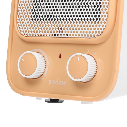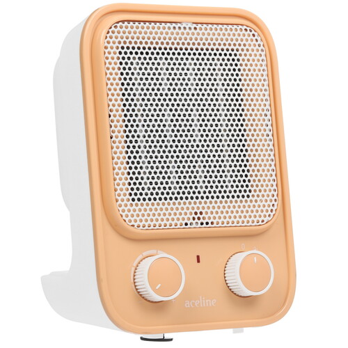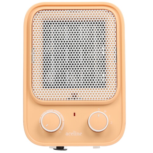 Оранжевый настольный тепловентилятор Aceline FH-15WP оснащен ручкой для переноски, рабочим индикатором и двумя поворотными переключателями. Вы можете настраивать температуру нагрева, использовать 2 ступени мощности или включать режим простой вентиляции. Керамический ТЭН работает без лишнего шума и запахов, не притягивает пыль и загрязнения.