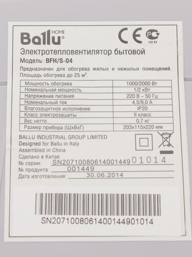 Тепловентилятор Ballu BFH/S-04 [6718071]