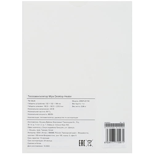 Тепловентилятор Mijia Desktop Heater ZMNFJ01YM [5098462]
