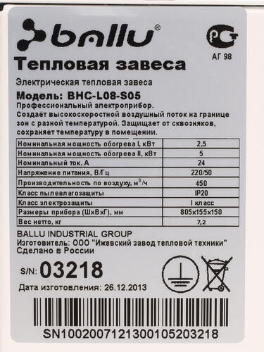 Тепловая завеса Ballu BHC-L08S05 [1035041]