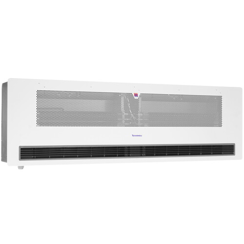 Тепловая завеса Тепломаш КЭВ-12П3081E представлена в лаконичном белом корпусе с защитой IP21, обладает весом 40.5 кг и габаритами 162x23.5x49.5 см. Прибор имеет 3 режима степени расхода воздуха и 2 уровня мощности на 6000 и 12000 Вт. Устройство подключается напрямую к электропроводе на 380 В.