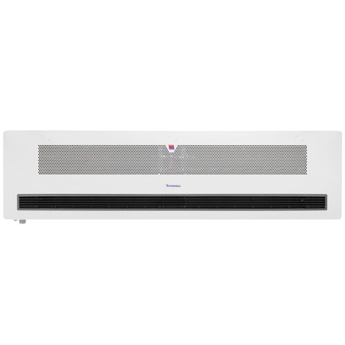 Тепловая завеса Тепломаш КЭВ-6П2281E подходит для горизонтального монтажа в проемы высотой до 2.5 м. Допускается скрытая установка за подвесным потолком. Устройство подключается к электропроводке на 220/380 В, действуя с максимальной производительностью 1700 м³/ч при уровне шума 53 дБ.