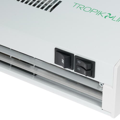 Тепловая завеса Tropik Line А3 может работать в режиме половинной (1500 Вт) мощности. Тип нагревательного элемента – СТИЧ. Производительность завесы составляет 280 м³/ч. Управление устройством производится посредством кнопок. При максимальной мощности обеспечивается температура до 58 °C.