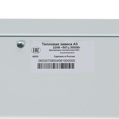 Завеса имеет защиту от коррозии и защиту от перегрева. Уровень шума в ходе работы устройства сравнительно невысок: максимальное значение этого показателя составляет 54 дБ. Габаритные размеры завесы – 560x170x114 мм. Масса модели – 3900 г. Цвет устройства классический – белый. Завеса рассчитана на непосредственное подключение к электрической проводке.