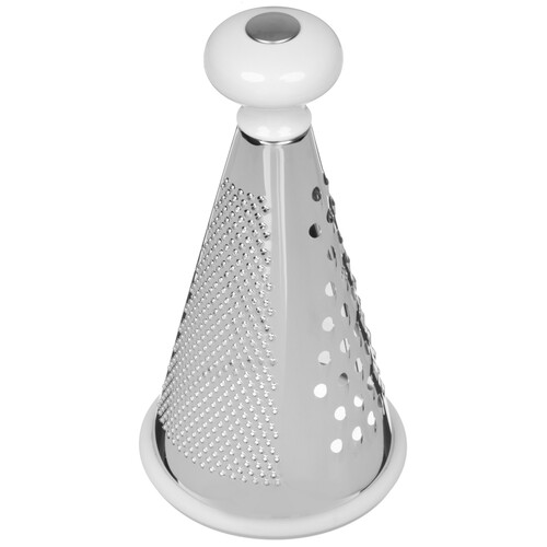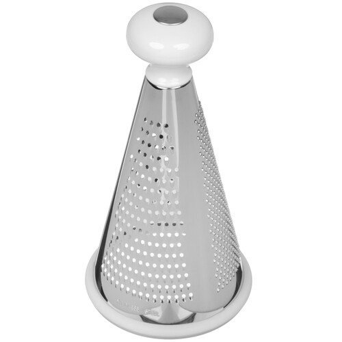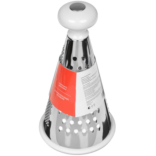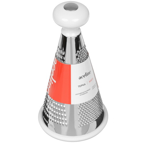 Для комфортного удержания на верхней части корпуса расположена шарообразная пластиковая ручка. Прорезиненное основание предотвращает смещение и скольжение на поверхности. Терку A3GT3 можно мыть в посудомоечной машине.