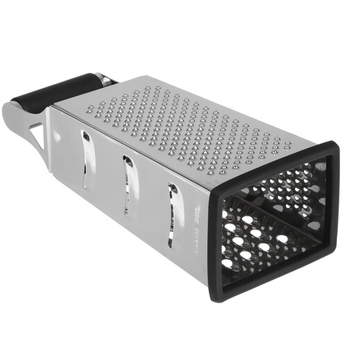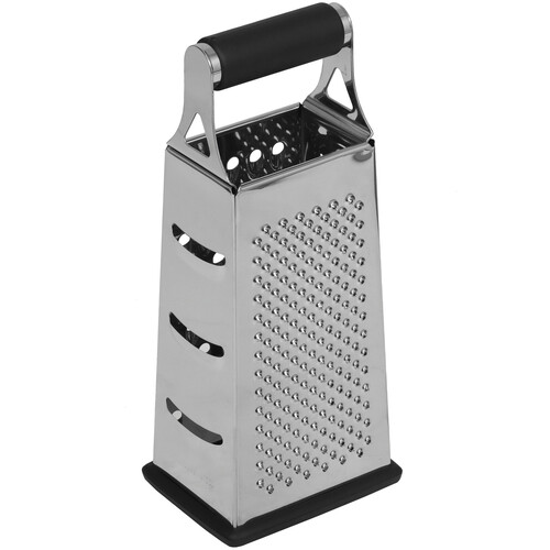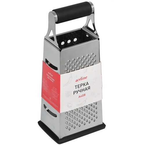 Терка Aceline A4GR серебристого цвета с 4 гранями подходит для крупного и мелкого измельчения. С ее помощью можно натереть морковь, свеклу, другие овощи, а также подготовить сыр перед подачей. Ножи устройства выполнены из нержавеющей стали. Они не ржавеют даже при постоянном контакте с водой. Рукоять с силиконовой отделкой не давит на руки и не выскальзывает во время использования.