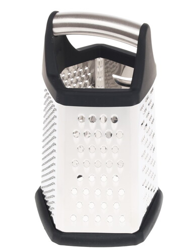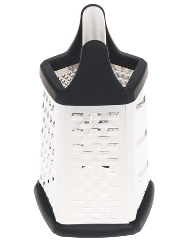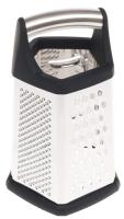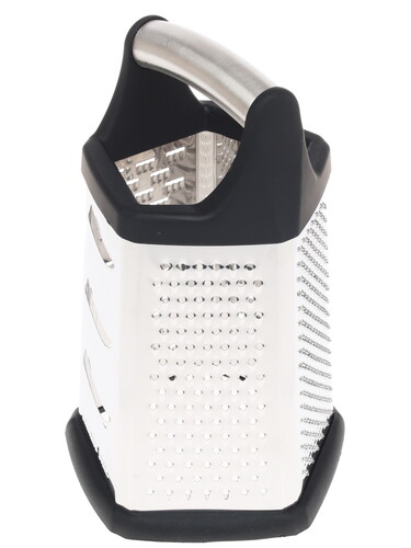 Ручка выполнена из силикона и стали. Она позволяет комфортно удерживать терку при использовании. Основание противоскользящее. Благодаря прорезиненному материалу изделие не будет смещаться. Очищать терку можно не только вручную, но и в посудомоечной машине.