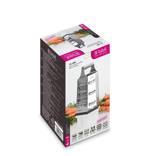 ручки - силикон, ножи - 6 шт, измельчение - крупное, мелкое, среднее, грани - 6 шт