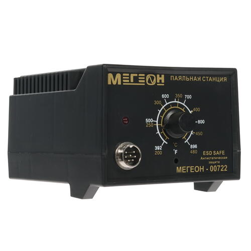 Конструкция устройства Мегеон 00722 оснащена дуговым медным жалом с долговечным покрытием, которое можно сменить на другой рабочий элемент. Прибор оснащен керамическим нагревателем с возможностью быстрой регулировки мощности. Пинцет поставляется с удобной подставкой-держателем и губкой для очистки жала. Работа осуществляется от общей электросети.