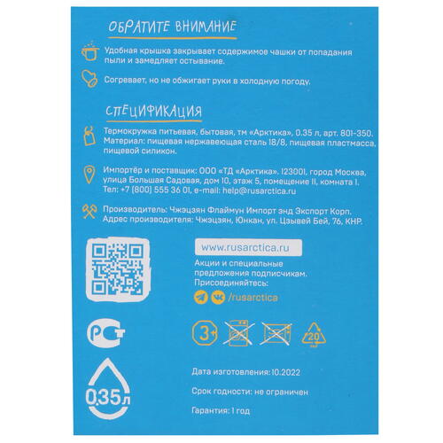 Термокружка Арктика 801-350 серебристый [5099335]