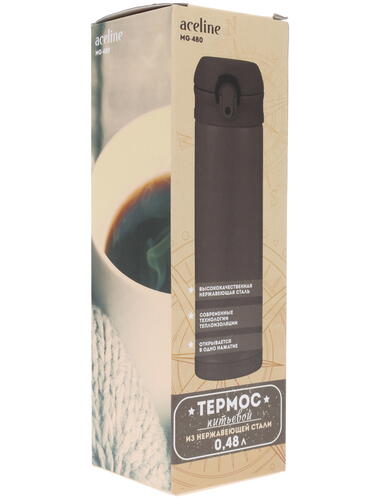 Термокружка Aceline MG-480 объемом 480 мл позволяет сохранить тепло любимого горячего напитка до 6 часов даже в самый холодный день. Это дает возможность брать с собой кофе или чай в поездку, на рыбалку или на длительную прогулку в холодный день. И корпус, и колба термокружки изготовлены из нержавеющей стали. Это делает посуду буквально бесстрашной перед ударами, падениями, высокой температурой.