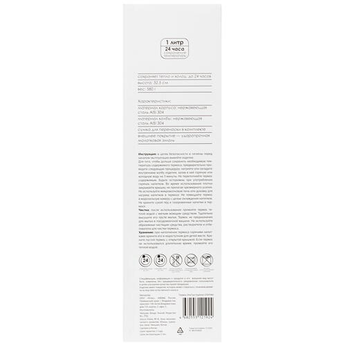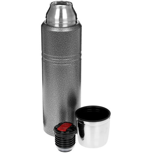 Термос OneTwo Explorer O3VF060 выполнен в сером цвете и предназначен для поддержания температуры налитых внутри напитков. Например, налитый внутрь кофе или чай эта модель сможет сохранить теплым на протяжении примерно 24 ч. Как расположенная внутри колба объемом 1 л, так и внешний корпус термоса изготовлены из нержавеющей стали, поэтому изделие отличается прочностью и большим сроком службы. Ударопрочное наружное покрытие корпуса предохраняет термос от появления царапин и прочих внешних дефектов. Крышка аксессуара рассчитана на использование в качестве небольшой кружки для напитков.