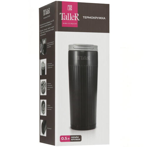 Термокружка TalleR TR-22439 объемом 480 мл сохранит температуру напитка именно такой, как вы любите, где бы вы ни находились за счет двойных стенок с вакуумной изоляцией. Для горячих напитков это время составляет до 6 часов, для холодных — до 12 часов.
