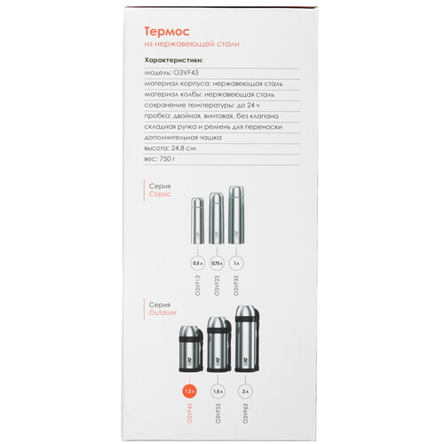 Термос OneTwo Outdoor O3VF43 серебристый [9031186]