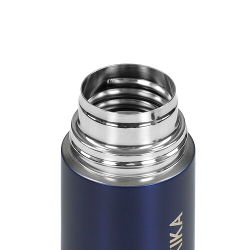 Классический дизайн Relaxika 101 с высокими показателями удержания температуры напитка для походов, путешествий, спорта и ежедневного использования. Синий цвет – это цвет неба, воды и гор. Поэтому синие термосы с логотипом