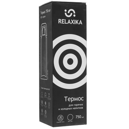 Классический термос Relaxika с высокими показателями удержания температуры напитка для походов, путешествий, спорта и ежедневного использования. Прочные двойные стенки из высококачественной нержавеющей стали 18/8 с вакуумной изоляцией гарантируют, что ваш напиток останется холодным в течение 36 часов и горячим до 30 часов. Этот материал не только прочен, но и гигиеничен, не выделяет никаких вредных для здоровья веществ. Ваши напитки сохраняет естественный вкус и не приобретут посторонний запах.