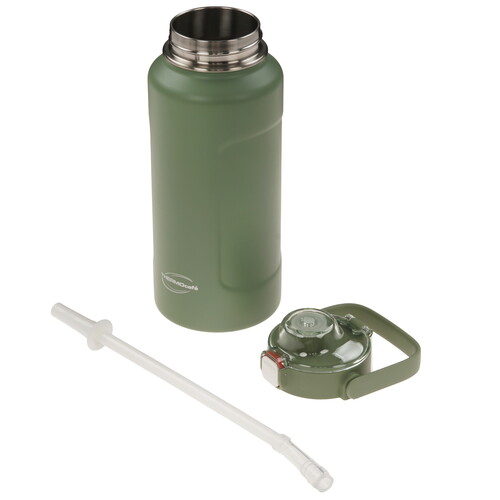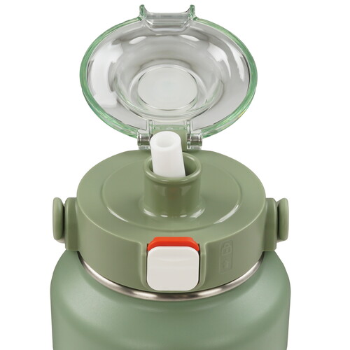 Солидная термобутылка серии THERMOcafe впечатляет не только своим внешним видом, но и полезным объёмом. Такая бутылка незаменима во время продолжительных спортивных тренировок и долгих прогулок – она вмещает 5-6 порций воды или напитка. Термобутылка пригодится не только спортсменам, но и всем, кто постоянно следит за поддержанием водного баланса в организме. За счёт вакуумной изоляции содержимое термобутылки сохранится нужной вам температуры в течение активного дня - не переохладится зимой, не нагреется в жаркое время года. Термобутылка надёжна и удобна в использовании. Для того, чтобы термобутылкой было комфортно пользоваться в движении, производителем реализована система открывания и закрывания одной рукой. На передней стороне крышки-пробки предусмотрена двуслойная кнопка-слайдер. Крышка автоматически откидывается и фиксируется в открытом положении при смещении кнопки-слайдера в нижнее положение и лёгком нажатии. Кнопка-слайдер блокирует случайное открывание крышки при её смещении в верхнее положение (указатель «замочек»). Нижний слой кнопки-слайдера сигнального цвета предусмотрен для визуального определения положения слайдера (открыто/закрыто).