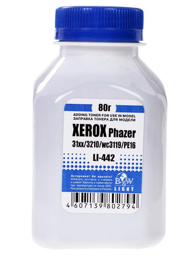 B&W LI-442 представляет собой расходный материал высокого качества, предназначенный для использования с принтерами лазерного типа Xerox Phaser 31xx/3210/WC3119/PE16. Благодаря применению этого тонера Вы сможете создавать высококлассные отпечатки документов профессионального качества. Данный расходный материал призван значительно повысить эффективность и увеличить производительность печати. Тонер гарантирует надежную работу Вашего печатного оборудования. B&W LI-442 находится в банке и обладает объемом 80 грамм. Такого количества ресурсов достаточно для осуществления отпечатки приблизительно 1500 документов в черном цвете.