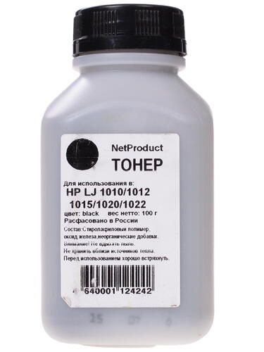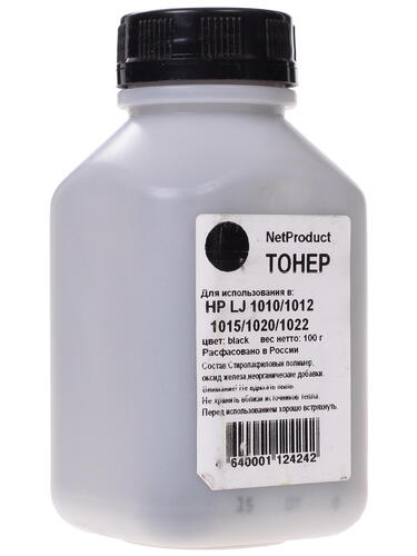 Благодаря использованию тонера NetProduct Вы сможете создавать отпечатки черного цвета профессионального качества. Этот расходный материал применяется для монохромной печати и подходит для использования с печатающими аппаратами HP LJ 1010/1012/1015/1018/1020. Высококачественный тонер обеспечит надежную работу печатного устройства, а также позволит значительно повысить эффективность и производительность печати. NetProduct рассчитан на 100 грамм расходного материала, что дает возможность осуществить отпечатку приблизительно 2000 страниц.